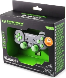El mando inalámbrico Esperanza en un elegante estilo negro‑verde ofrece un juego cómodo y fiable sin las limitaciones de los cables. La estable tecnología inalámbrica de 2,4 GHz asegura respuestas fluidas, mientras que la retroalimentación por vibración intensifica cada golpe, explosión y disparo para una experiencia de juego más realista.