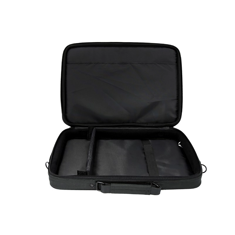 El bolso ESPERANZA Classic+ está diseñado para transportar con seguridad portátiles de hasta 17". Ofrece paredes laterales reforzadas, interior acolchado y correa de sujeción para fijar el dispositivo. Su resistente acabado textil en color negro es adecuado para la oficina, reuniones y estudiantes.