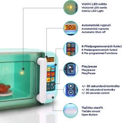 Este elegante microondas infantil es el complemento ideal para cualquier cocinita. Al activar un programa, el plato interior empieza a girar, el microondas se ilumina y emite sonidos como un electrodoméstico real. Gracias al panel táctil, los niños “eligen” fácilmente los programas y aprenden los fundamentos de las tareas de cocina jugando.