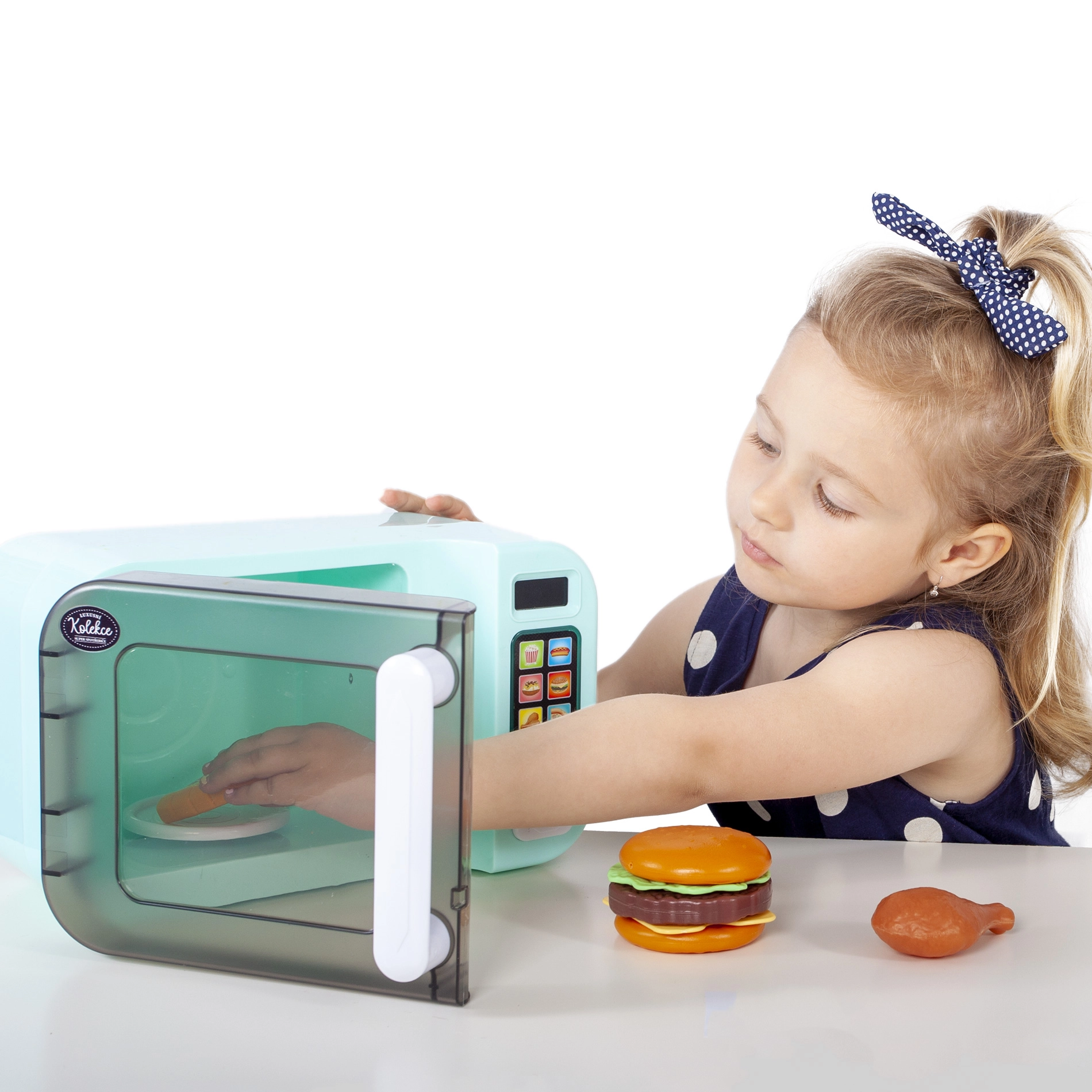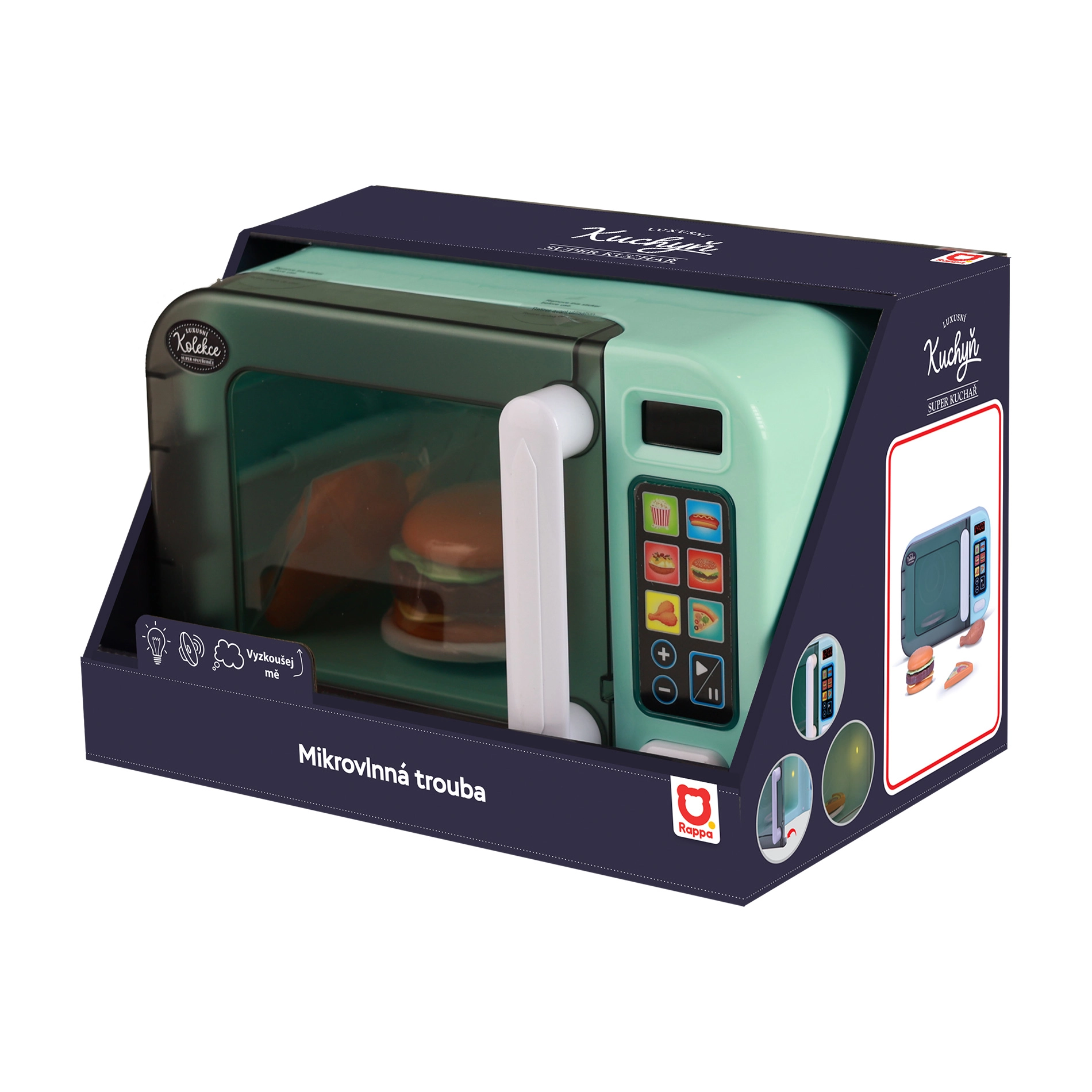 Al iniciar el programa, el microondas se ilumina, emite sonidos como uno real y el plato con el alimento de imitación gira: perfecto para un juego de cocina auténtico.