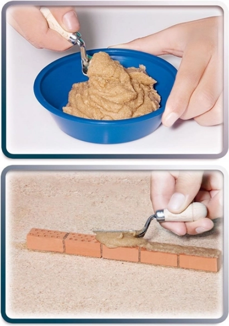 Teifoc Casa Andres utiliza mini ladrillos reales y mortero de maíz, lo que permite a los niños vivir una experiencia auténtica de construcción.
