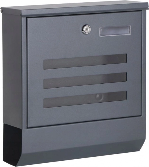 Elegante buzón ModernHome de acero galvanizado en tono antracita, resistente a la corrosión y a la intemperie. Ofrece tubo para periódicos, ventanillas de control, estructura estanca y fácil montaje en fachada o valla. El paquete incluye tacos de montaje y 2 llaves.