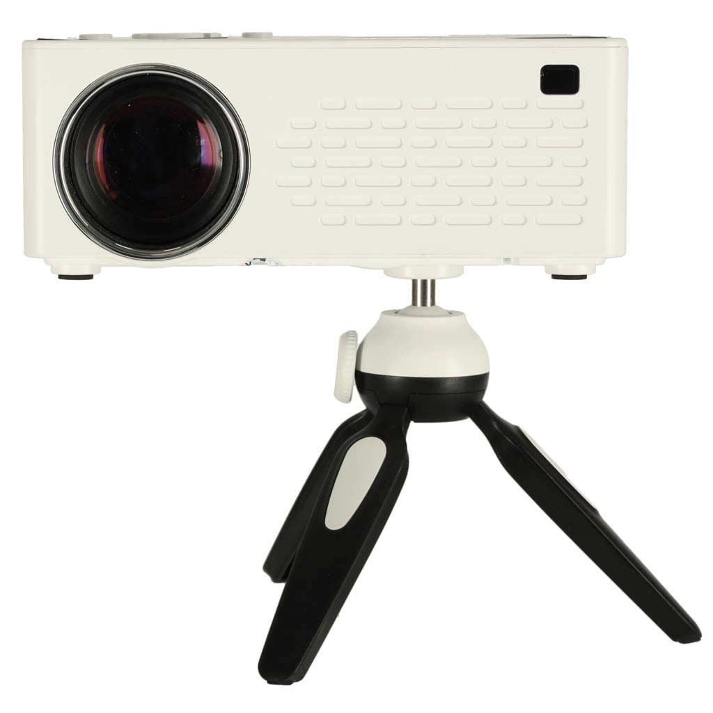 Compacto proyector LED portátil con panel TFT LCD que ofrece Full HD 1920 × 1080, imagen en formato 16:9 y diagonal de 28–100". Gracias al práctico trípode lo orientarás fácilmente, disfrutarás de un manejo sencillo también a distancia y conectarás fuentes mediante HDMI, AV, AUX/USB. La larga vida útil del LED de 30 000 h garantiza un uso sin preocupaciones en casa y de viaje.