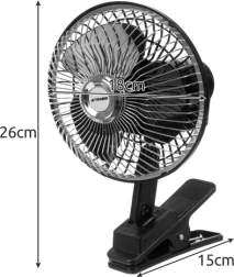 El ventilador está equipado con un clip robusto que garantiza una fijación fácil en diversas superficies, lo que lo hace ideal para su uso en vehículos.