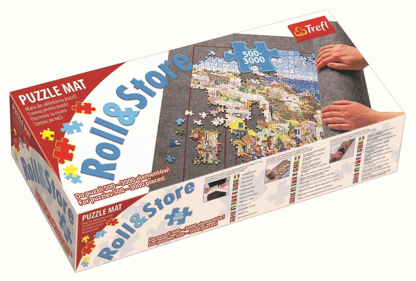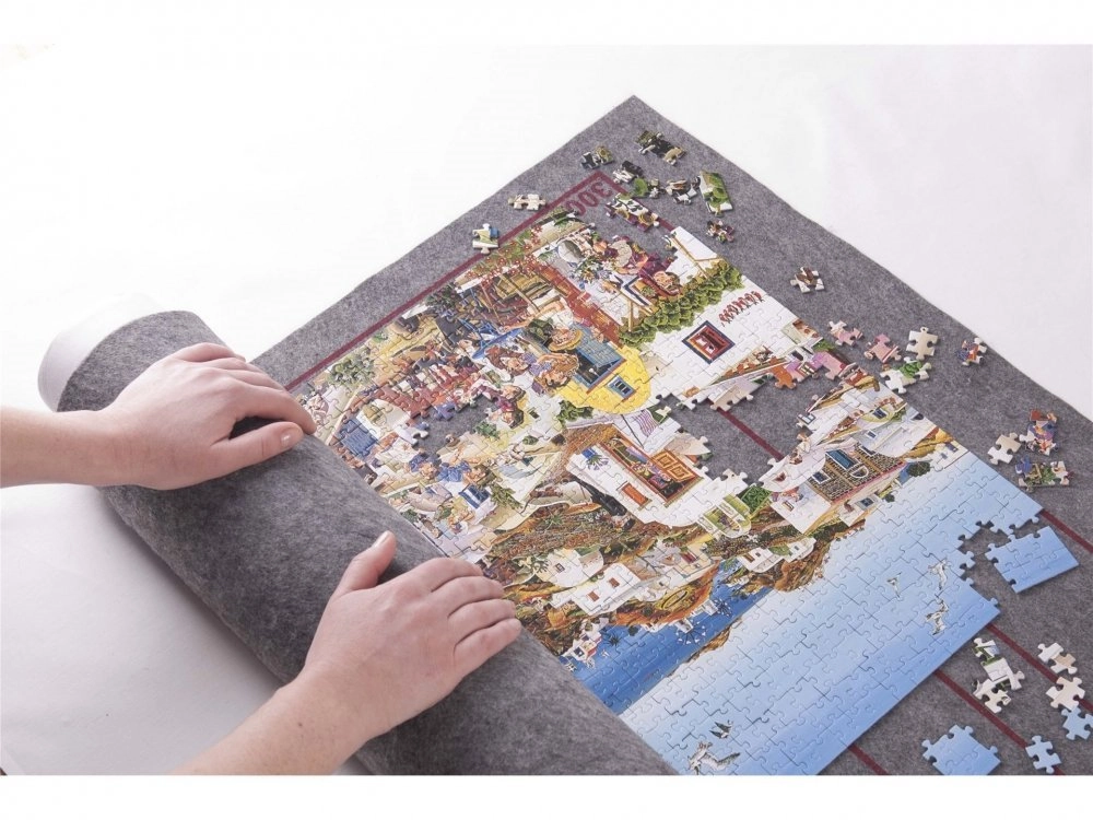 La base enrollable de fieltro para puzles TREFL facilita tanto el montaje como el almacenamiento de puzles a medio hacer. Ofrece una gran superficie de fieltro de 124 × 94 cm con marcos guía para 500–3000 piezas y, gracias al tubo y a 3 correas con cierre de velcro, podrás enrollar, transportar y guardar el puzle con seguridad sin perder piezas.