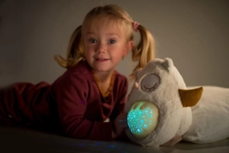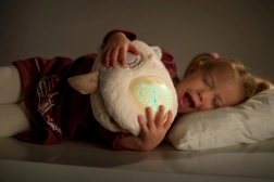 El buhito proyecta un cielo nocturno en 8 tonos de color que crean un ambiente agradable para dormir y calman los sentidos del bebé.