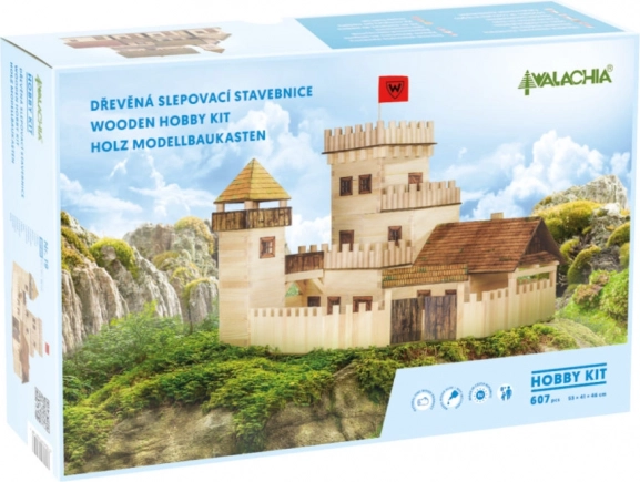 Este preciso juego de construcción de madera del castillo WALACHIA encantará a modelistas jóvenes y adultos. Se construye con listones de madera de 9×9 mm y se complementa con detalles de papel que aportan un aspecto realista, desde ventanas y puertas hasta techos y bastiones. El set es ideal para desarrollar la paciencia, la motricidad fina y la imaginación espacial.