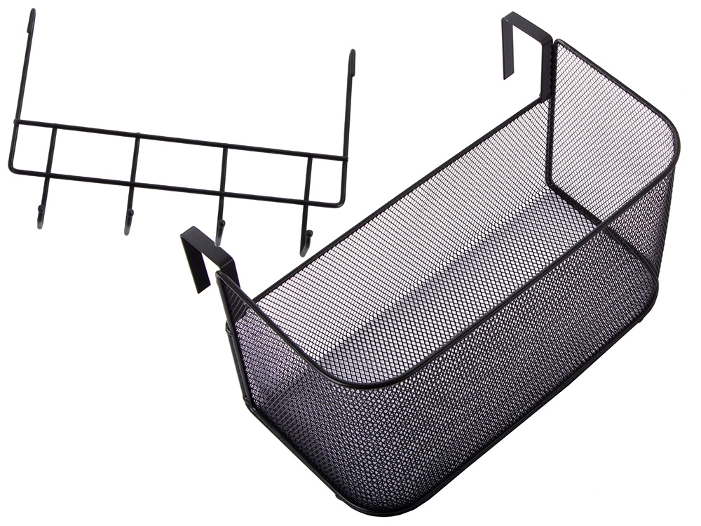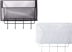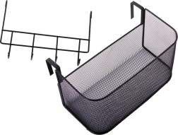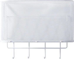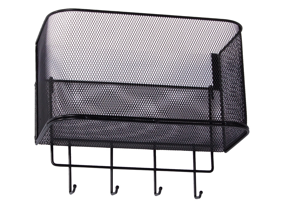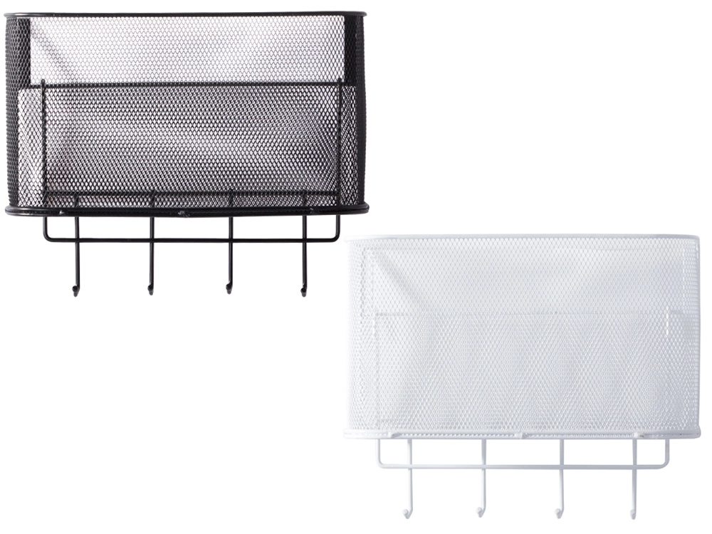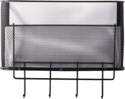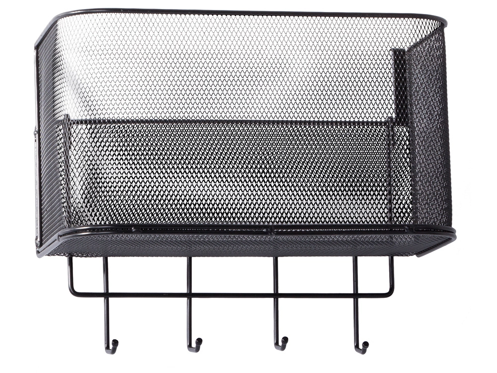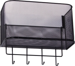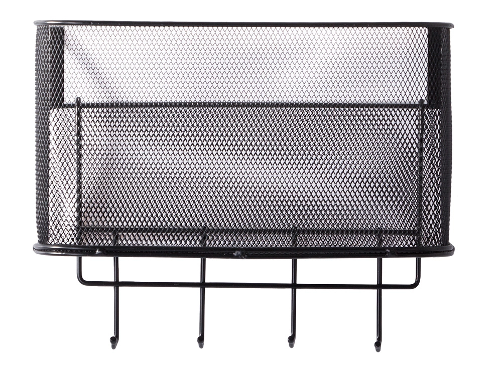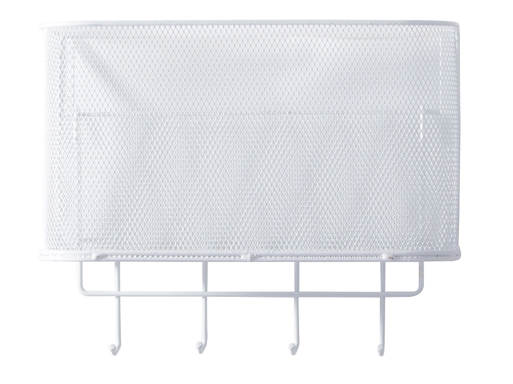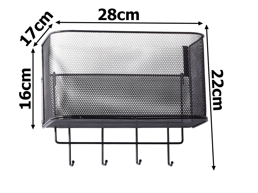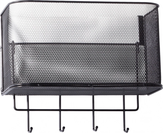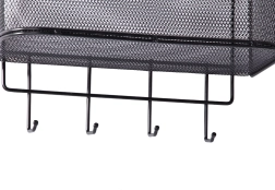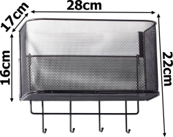 Esta cesta metálica colgante no solo es práctica, sino también elegante. Es espaciosa y permite guardar diversos objetos, desde accesorios de cocina hasta artículos de aseo. Los 4 ganchos adicionales se pueden usar para colgar llaves, toallas o bolsos.