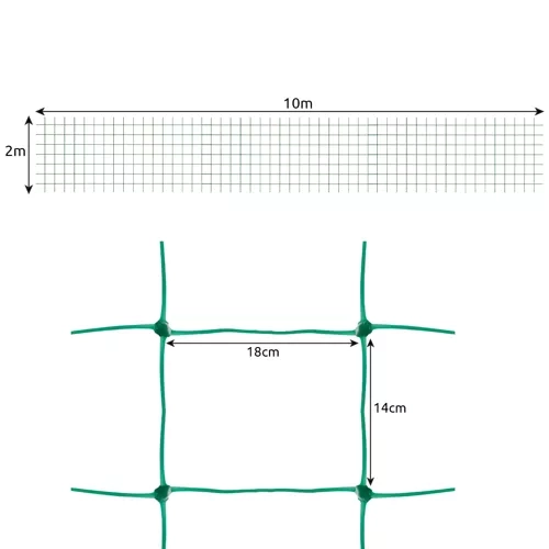 La práctica red de cultivo GARDLOV de color verde y dimensiones de 2 × 10 m ofrece un soporte fiable para plantas trepadoras como pepinos, tomates, guisantes o judías. El resistente material PP con uniones reforzadas garantiza una larga vida útil, mientras que las mallas grandes facilitan el riego, la poda y la cosecha. El color verde se integra discretamente con la vegetación y la red puede instalarse fácilmente en vertical u horizontal.