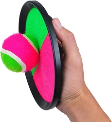 Disfruta de mucha diversión con un juego sencillo y adictivo en el que la pelota, al impactar, se adhiere a la superficie de la pala. Basta con despegarla fácilmente y el turno continúa. Gracias a la correa ajustable en la parte posterior, podrás adaptar las palas al tamaño de tu mano, por lo que se ajustan de maravilla tanto a niños como a adultos.