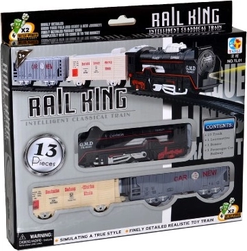 Disfruta de la atmósfera del ferrocarril clásico con este elegante tren a pilas. El set incluye una locomotora, dos vagones y vías que forman un circuito con un diámetro de 67 cm (longitud de la pista 210 cm). El tren está equipado con efectos de luz y sonido para una experiencia aún más realista.