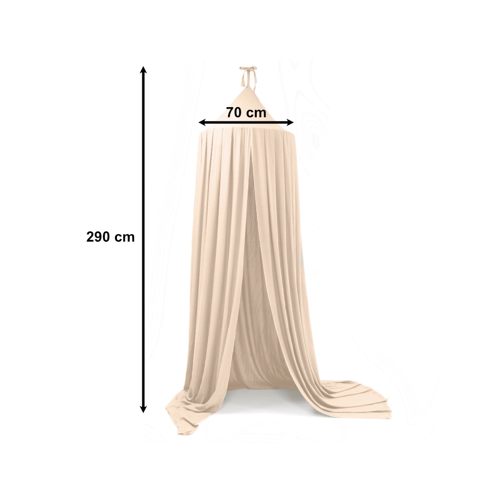 Un elegante dosel colgante en color beige transforma la habitación infantil en un lugar acogedor para jugar y dormir. La tela ligera y las generosas dimensiones crean una agradable sensación de privacidad y aportan encanto al interior. En el paquete encontrarás también los elementos de montaje necesarios, por lo que la instalación es fácil y rápida.