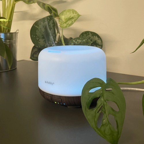 Un solo dispositivo para mejorar el aire y el estado de ánimo. RUHHY combina humidificador, difusor de aromas, ionizador y luz LED ambiental con hasta 8 colores para un ambiente acogedor.