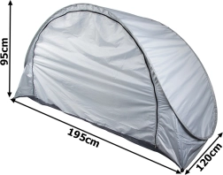 La tienda es ligera, fácil de transportar y, una vez plegada, ocupa muy poco espacio. El diseño con cierre y la posibilidad de anclarla con piquetas aumentan la estabilidad y la comodidad. Sus dimensiones de 195 × 120 × 95 cm son ideales para 1–2 personas, ya sea en la playa, en el jardín, acampando o como rincón de juegos para niños.