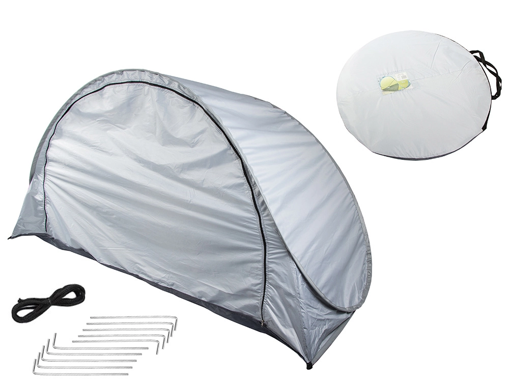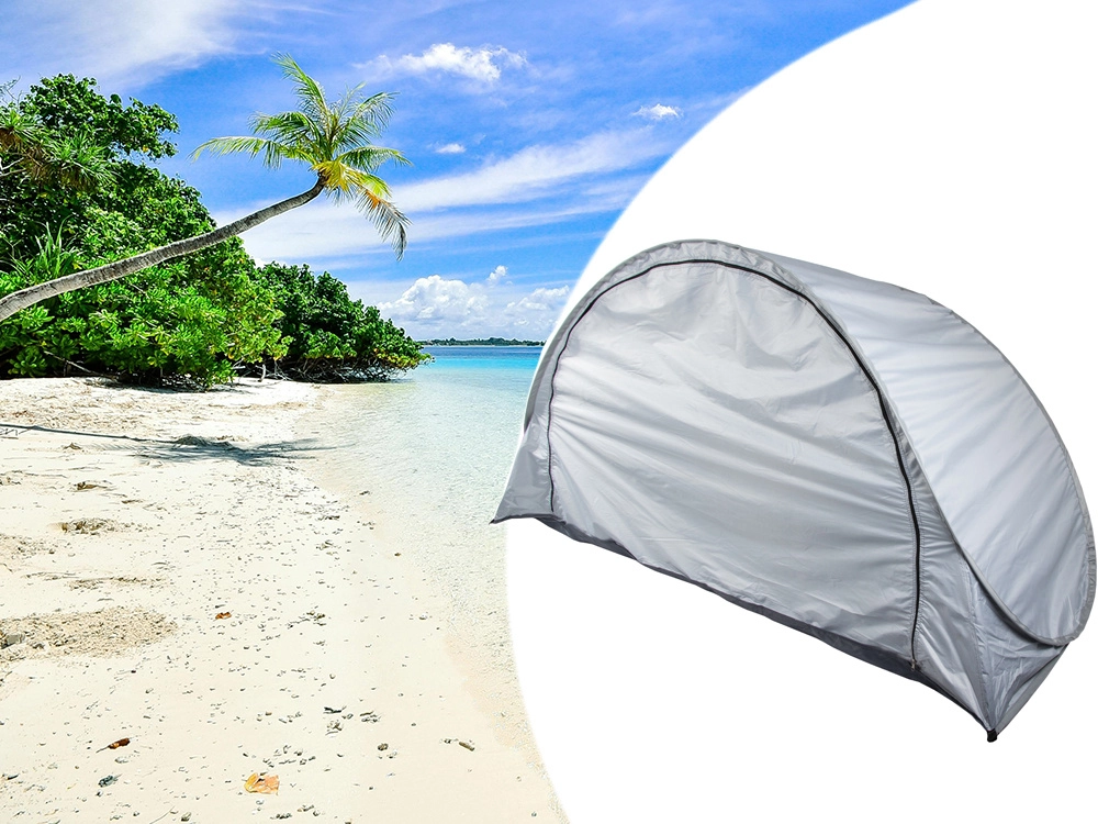 La tienda de playa auto desplegable en elegante color gris garantiza una sombra agradable y privacidad durante los días calurosos. Gracias a su mecanismo inteligente se despliega casi al instante, para que dediques más tiempo al descanso. El material con protección UV ayuda a reducir el impacto de la radiación solar, mientras que su forma aerodinámica resiste mejor al viento.