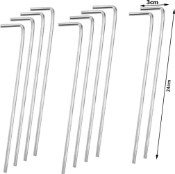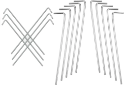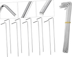 Las piquetas son perfectas para tiendas de playa y de trekking, pabellones de jardín e invernaderos de plástico. El acabado plateado de acero es resistente a la deformación y al uso prolongado. El set viene empaquetado de forma compacta y listo para usar de inmediato.