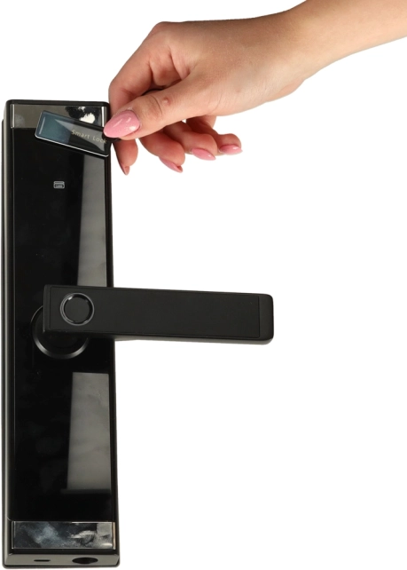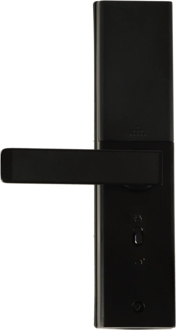 El cuerpo robusto de aluminio en negro mate encaja en interiores modernos. La cerradura es apta para puertas izquierdas y derechas de 3,5–5 cm de grosor y permite una instalación rápida. Si se agotan las pilas, siempre podrás usar la llave mecánica.