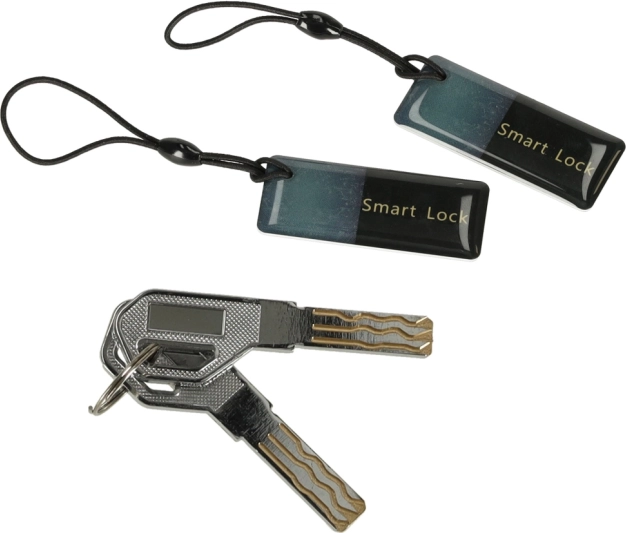 - Manilla exterior, manilla interior, 2× llave, 2× tarjeta RFID, mecanismo de cerradura y accesorios de montaje, manual