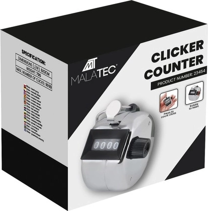 El manejo es muy sencillo: basta con pulsar el botón situado en la parte superior de la carcasa y el contador sumará una unidad. Puede restablecer el resultado girando la rueda negra.