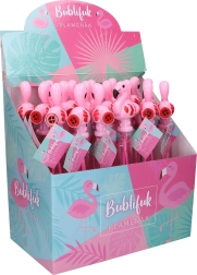 Disfruta de la diversión con el original burbujero 2 en 1 con forma de flamenco, que no solo crea burbujas increíbles, sino que también emite sonidos gracias al silbato.