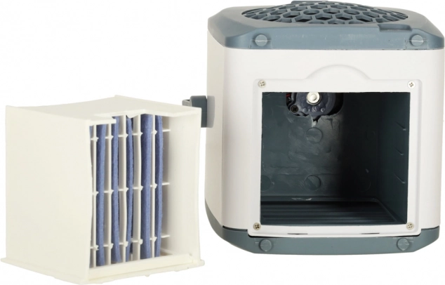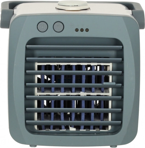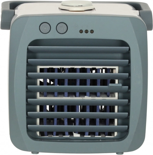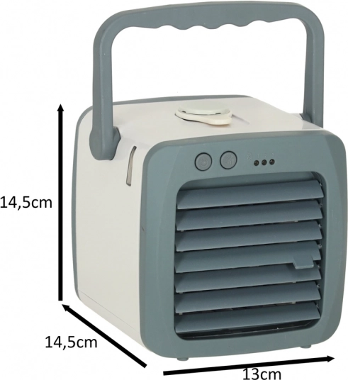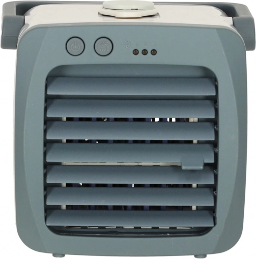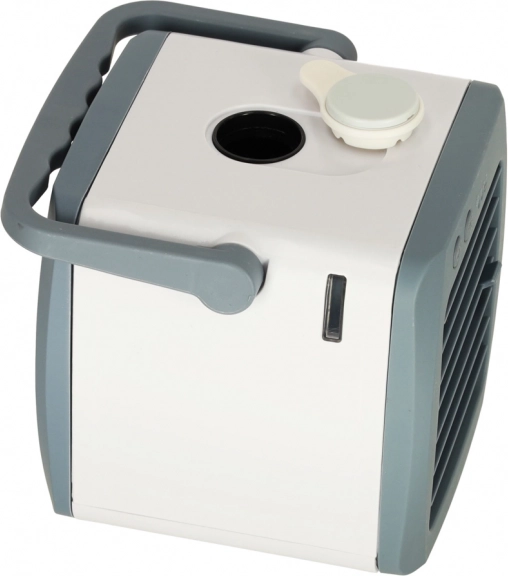 Disfruta de confort personal incluso en los días calurosos. Este mini aire acondicionado USB utiliza agua para un enfriamiento evaporativo natural que humedece y refresca el aire en el entorno inmediato. Gracias a sus dimensiones compactas y al práctico asa, lo trasladarás fácilmente entre el escritorio, el dormitorio o la sala de estar.