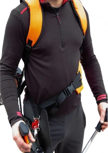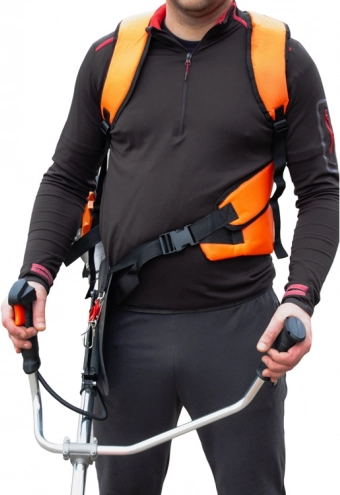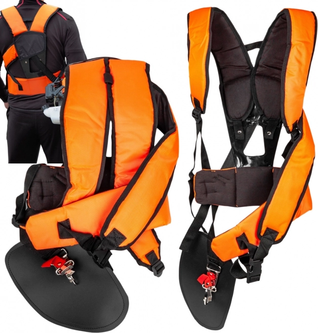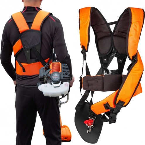 El arnés para cortadora de césped proporciona comodidad y seguridad al usuario gracias a sus correas ajustables. Fabricado con materiales de alta calidad, garantiza confort durante un uso prolongado. Su diseño ergonómico distribuye el peso, lo que reduce la fatiga de espalda y hombros.