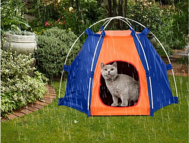 La práctica carpa para perros y gatos crea un refugio cómodo para el descanso y los viajes. El tejido resistente protege contra la lluvia y la humedad y también proporciona una agradable sombra frente al sol, para que tu mascota esté seca y confortable. La entrada redondeada facilita el acceso y la estructura aireada favorece la circulación del aire.