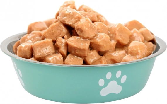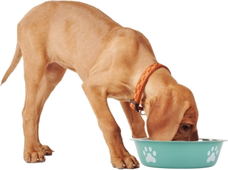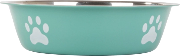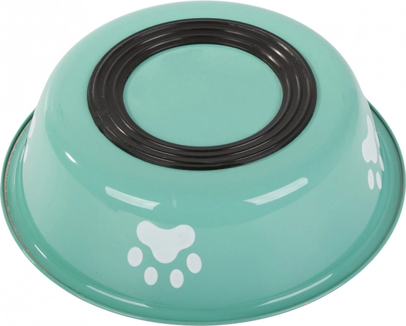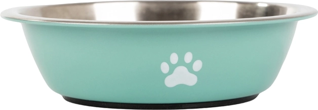 El cuenco turquesa con estampado de huellas luce genial y es apto para perros y gatos en la alimentación diaria.