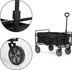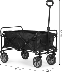 ¿Busca un carrito fiable para el uso diario? Este carrito de transporte plegable es ideal para el jardín, la playa, el parque y las compras. Su marco metálico estable, la amplia superficie de carga de 85 × 47 cm y la capacidad de 70 kg pueden con herramientas, equipaje y compras voluminosas.