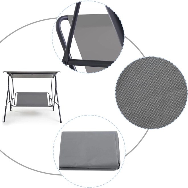 Asiento de tela universal para columpios de jardín de 140 × 100 cm en elegante color gris. Material resistente, impermeable y a prueba de intemperie, fácil de limpiar y resistente al desgarro. El asiento se adapta a la mayoría de los columpios de jardín y les aporta un aspecto renovado y una larga vida útil.