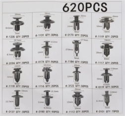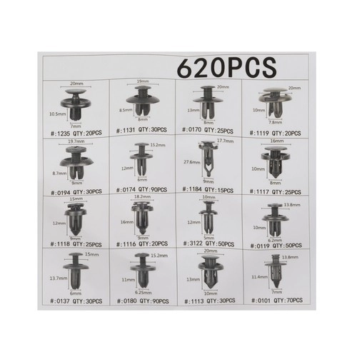 ¿Busca una solución práctica para montaje y reparaciones en el interior y exterior del vehículo? Este juego universal de clips ofrece un amplio surtido de 620 unidades para las tareas más habituales: guarnecidos de puertas, pasos de rueda, revestimientos del maletero, suelos, parachoques y molduras. El polipropileno (PP) resistente soporta la humedad, los cambios de temperatura y las tensiones mecánicas, por lo que los clips se mantienen firmes y duraderos.