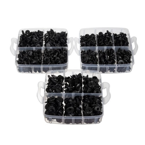 18 tamaños en 16 tipos cubren los usos más comunes: paneles de puerta, pasos de rueda, cubiertas del motor, parachoques y fijación de cableado.