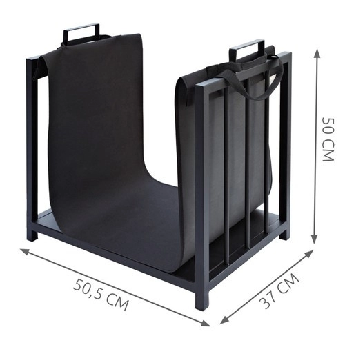 Disfruta de la comodidad al atender la chimenea: la combinación de soporte y bolsa extraíble permite traer la leña rápidamente y tenerla ordenada y accesible. El marco estable con asa práctica sujeta la carga con seguridad, mientras que la bolsa textil evita que la suciedad caiga al suelo.