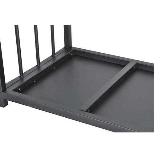 La estructura totalmente metálica está tratada con recubrimiento en polvo resistente a la intemperie, por lo que también es adecuada para terrazas cubiertas. El color negro y las líneas limpias combinan a la perfección con interiores modernos y tipo loft así como con salones clásicos.