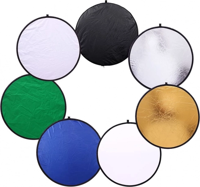 Conjunto universal para trabajar la luz: reflector fotográfico plegable 7 en 1 con un diámetro de 60 cm e integrado con difusor. Ofrece superficies dorado, plateado, blanco, negro, azul, verde y difusor para un control perfecto de reflejos, temperatura y uniformidad de la luz tanto en estudio como en exteriores. Ligero, compacto y resistente: ideal para profesionales y principiantes.