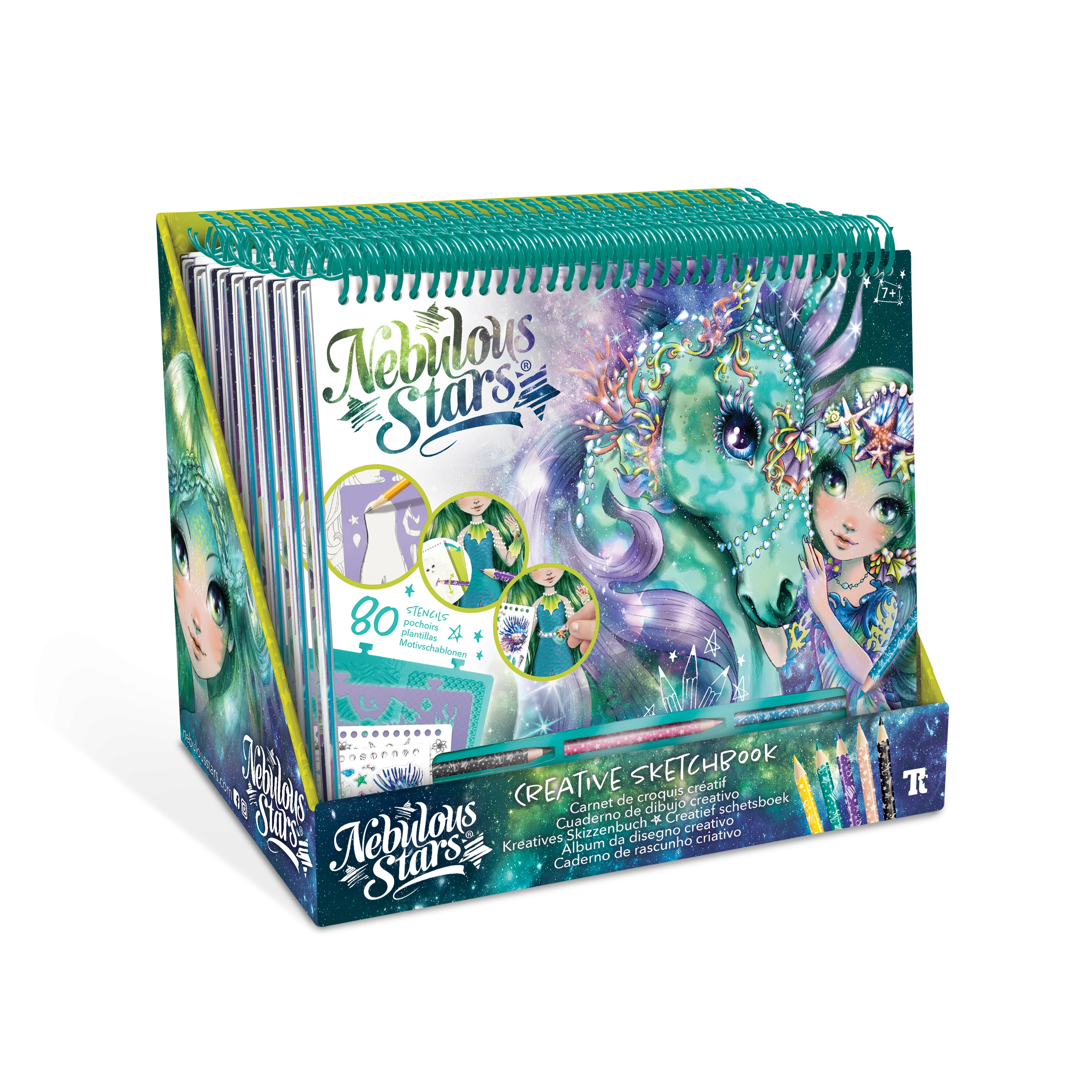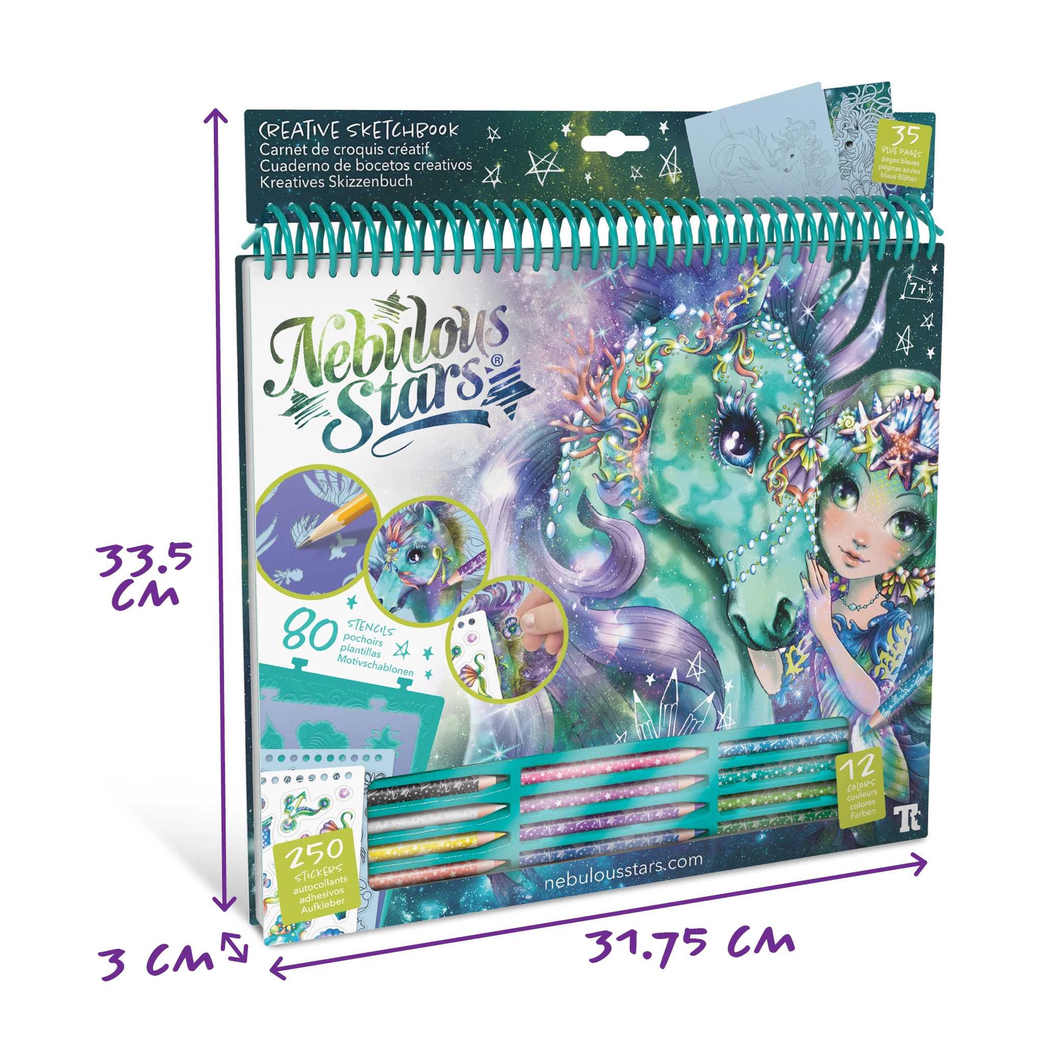Descubre el mundo mágico de NEBULOUS STARS con este sketchbook creativo en color verde. El set ofrece todo para crear: desde 250 pegatinas y 12 lápices de colores hasta 80 plantillas y 35 hojas ilustradas. Gracias a las instrucciones de 12 técnicas de dibujo, los niños desarrollan la imaginación, la motricidad fina y el sentido del color. Un regalo ideal para pequeñas artistas a partir de 7 años.