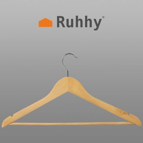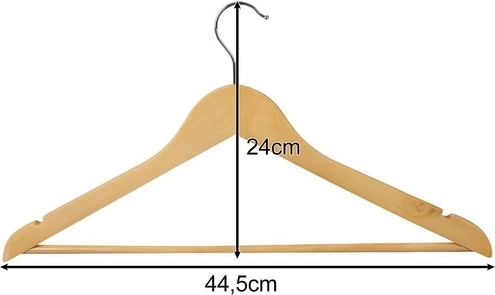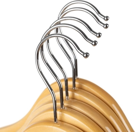 Las perchas están hechas de madera maciza de alta calidad y tratadas con una laca incolora. La superficie es lisa, resistente a la humedad y a pequeños arañazos, y mantiene el aspecto natural.