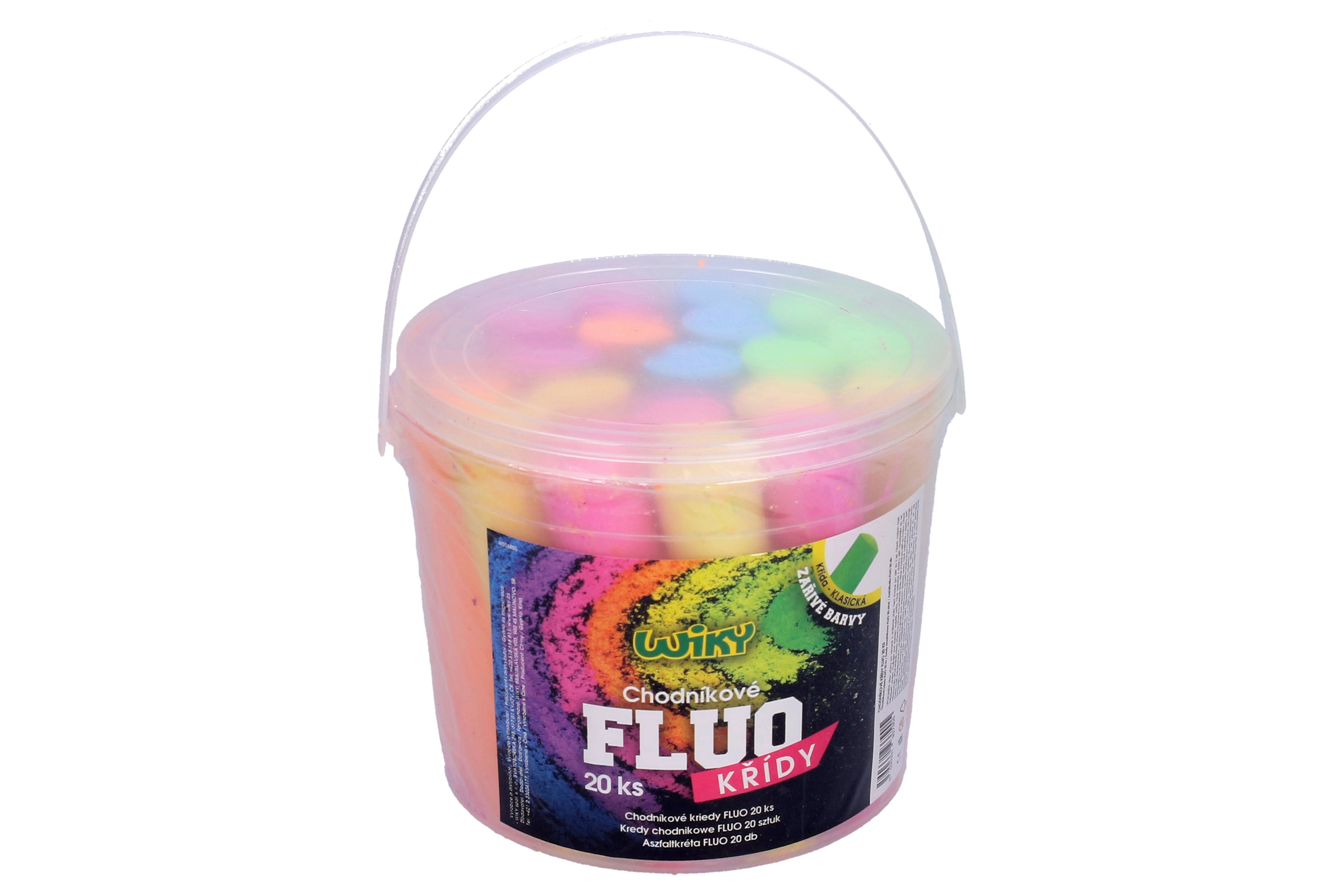 - El set incluye 20 uds de tizas fluorescentes en un práctico cubo.