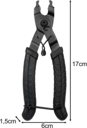 Los alicates para eslabón rápido de cadena de bicicleta BIGSTREN son un ayudante fiable para el mantenimiento y servicio rápidos de la bici. Su construcción robusta de acero al carbono puede con eslabones sucios u oxidados, y las mordazas precisas garantizan un agarre firme y un trabajo limpio. La herramienta está diseñada para abrir y cerrar eslabones rápidos, por lo que podrás desmontar y montar la cadena en un momento.