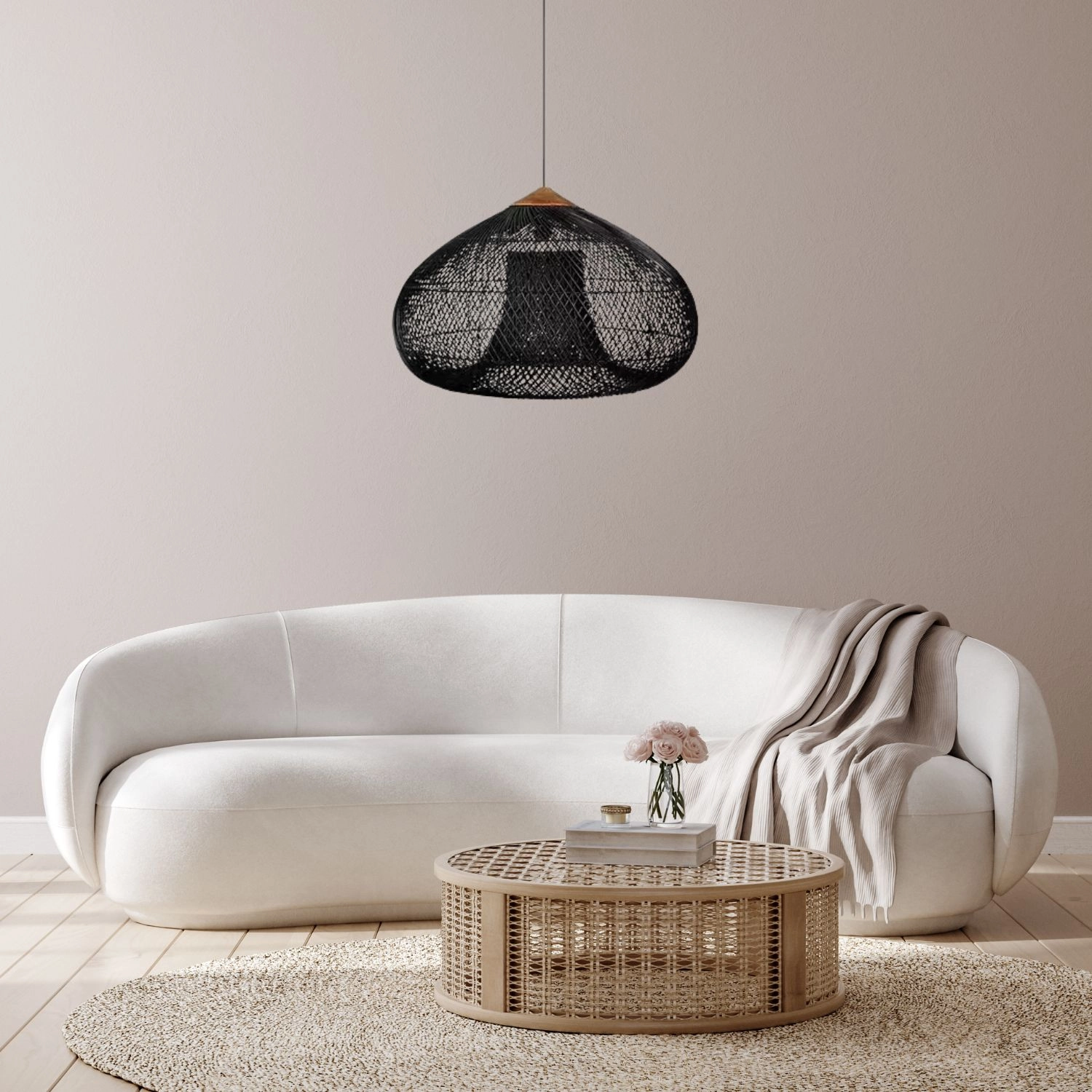 La lámpara de techo colgante de ratán natural es ideal para distintos diseños de interior, aportando calidez y elegancia. Una excelente opción para salones, comedores, dormitorios e incluso espacios comerciales como cafeterías o restaurantes.