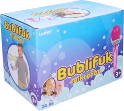 El pompero con forma de micrófono es el juguete ideal para niños que quieren ejercitar su creatividad e imaginación convirtiéndose en cantantes o presentadores. Con su capacidad de 70 ml, se garantiza que los niños disfruten de horas de diversión haciendo burbujas.