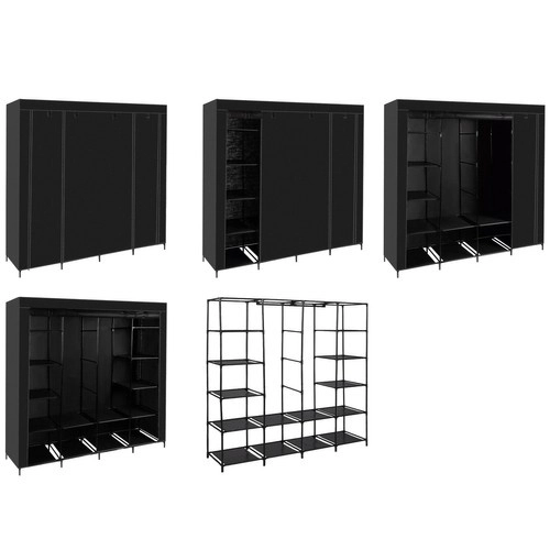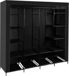 El armario incluye un total de 14 estantes y 2 barras para colgar, lo que permite una organización eficiente de tus pertenencias. El cierre con cremallera protege el contenido del polvo y la humedad.