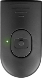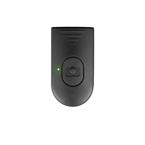 El mando extraíble funciona como disparador de cámara y start/stop de vídeo. Alcance de 10–15 m, sin apps, compatible con Android e iOS.