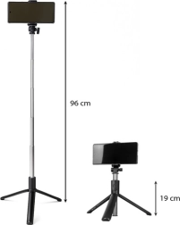 - Telescópica, 2 en 1 (palo selfie + trípode)