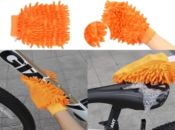 El guante absorbente de microfibra suave limpia con seguridad el cuadro, la horquilla y las piezas delicadas, dejando la superficie sin marcas.