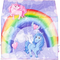 Crea para los niños su propio refugio para la fantasía y la diversión. La tienda de juegos IPLAY con motivos de arcoíris y unicornios ofrece un lugar cómodo y privado para leer, jugar y descansar. Gracias a su estructura ligera y estable, se puede montar fácilmente en el salón, el dormitorio infantil o la terraza.