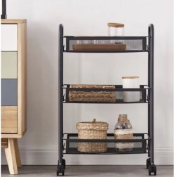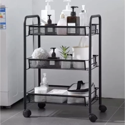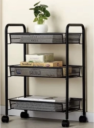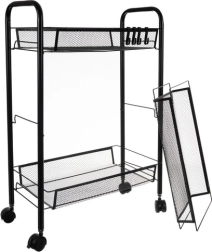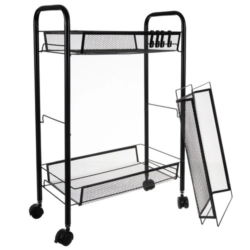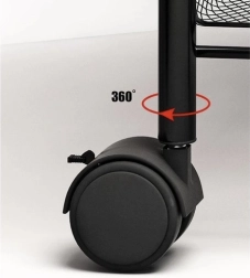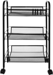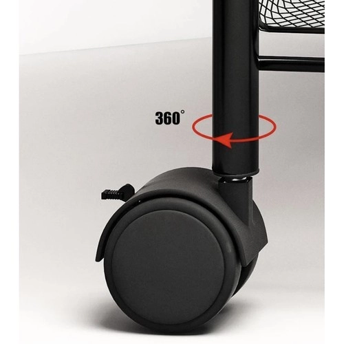 Mantén el orden con estilo. Este estante compacto pero estable, de hierro con recubrimiento en polvo, está diseñado para el uso diario. Las baldas tipo cesta abiertas garantizan visibilidad y circulación de aire, por lo que es ideal para alimentos, cosméticos y productos de limpieza. Cuatro ruedas de calidad permiten un desplazamiento fluido; dos de ellas cuentan con freno integrado para un anclaje seguro en su lugar.