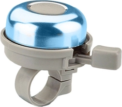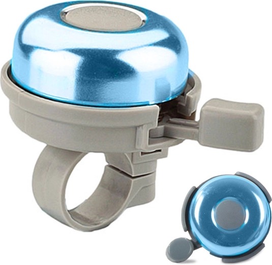 Este timbre metálico para bicicleta es un accesorio de seguridad fiable que aumenta tu visibilidad y audibilidad en el tráfico. Su diseño compacto con palanca para el pulgar permite un manejo cómodo durante la marcha, y su estilo clásico en color azul combina con la mayoría de bicicletas y patinetes.