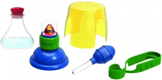 Incluye un matraz previamente lleno y sellado que simula el proceso de calentamiento. Además, el set contiene un manual de usuario con experimentos para que los niños puedan seguirlos paso a paso. También encontrará accesorios como una pipeta, una abrazadera y gafas de protección para una experiencia realista.