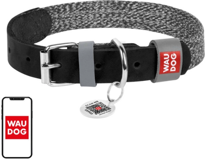 El collar WAUDOG, ligero y resistente, combina cuero natural y algodón reciclado para ofrecer el máximo confort a los perros pequeños. El código QR integrado funciona como un pasaporte digital con intercambio de contactos para un rápido retorno en caso de pérdida. Su ancho de 15 mm y el ajuste para un contorno de cuello de 27–36 cm garantizan un uso seguro y cómodo en los paseos diarios.